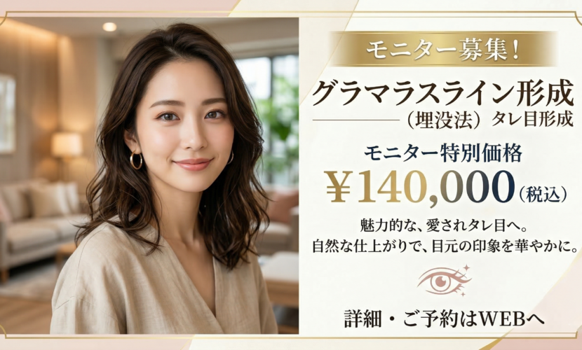 鏡を見るたび、自分の目元が少し「きつい」と感じていませんか? 切らないグラマラスライン(埋没法)なら、糸だけであなたの瞳を理想的な癒やし系タレ目へと導きます。