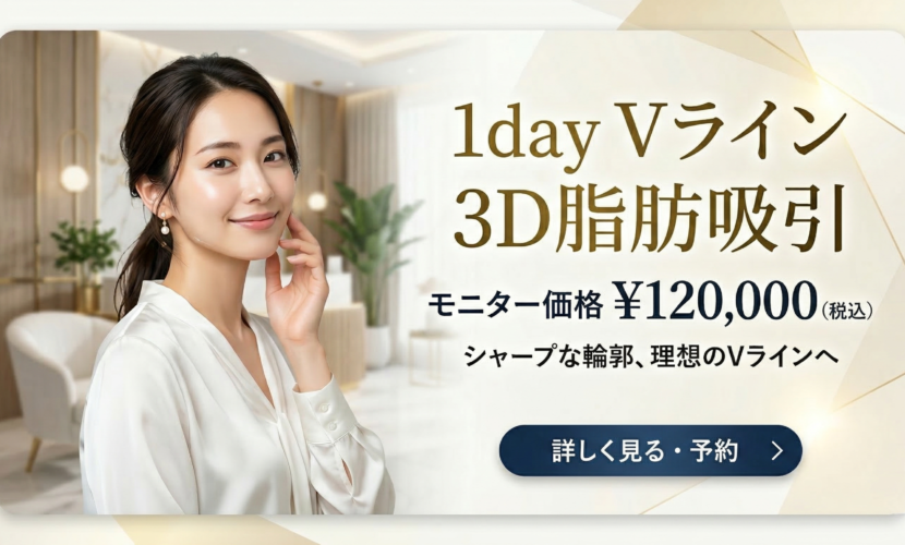 今回のキャンペーンは大人気の「1dayVライン3D脂肪吸引」を特別な価格でご案内です。