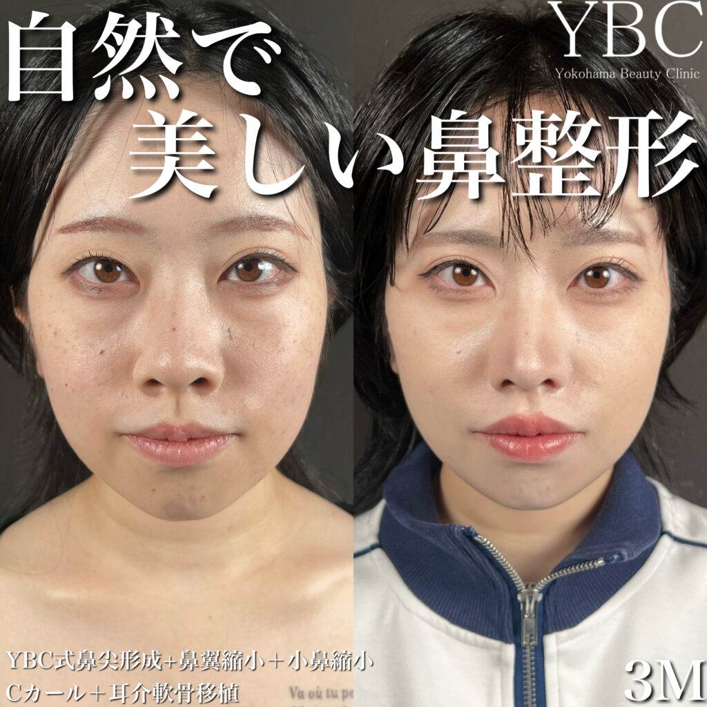 鼻の悩みの中でも、特に多くの方が抱えているのが「小鼻の広がり」です。 YBC横浜美容外科のYBC式 鼻翼縮小術は、単に小さくするだけではありません。お顔全体のパーツバランスをミリ単位で計算し、「元々その形であったかのような」ナチュラルで存在感のない美しい鼻をデザインします。